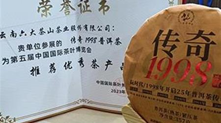 傳奇1998榮獲第五屆中國國際茶葉博覽會“推薦優(yōu)秀茶產(chǎn)品”!