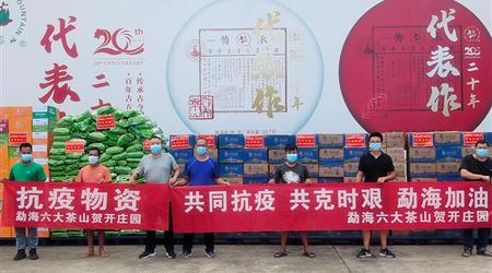 10月6日,六大茶山火速為勐??挂叩谝痪€帶去價(jià)值16萬(wàn)余元的生活物資,為勐??h疫情防控工作獻(xiàn)上綿薄之力。