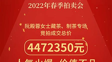 萬眾矚目的“陳年普洱及佳茗”成交喜人,中國嘉德2022春季拍賣會(huì)阮殿蓉女士藏茶、制茶拍賣專場(chǎng)總攬4472350元。